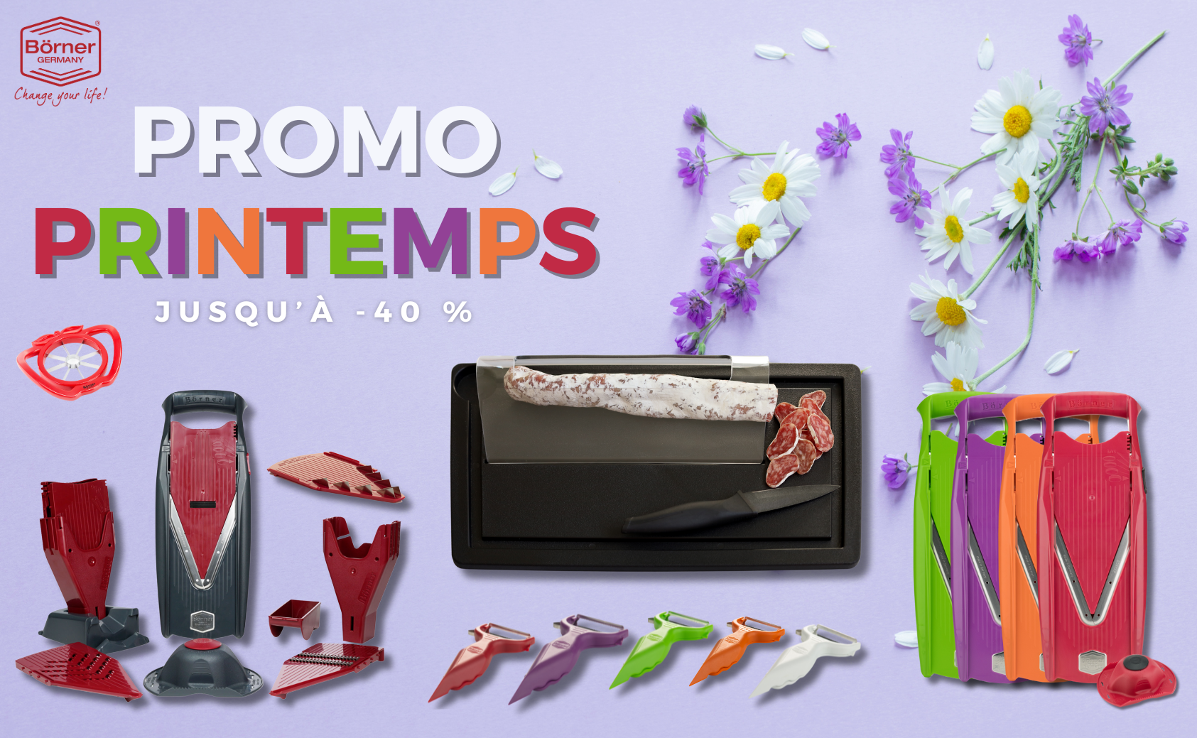 Le slogan de Börner « Change your life! » reflète la volonté de faciliter la vie de nos clients. Nous croyons qu’une alimentation saine devrait être le fondement d’une vie meilleure et nous voulons soutenir cela. Parce que c’est le début d’une nouvelle vie, nos mandolines et râpes sont parfaites pour favoriser une alimentation saine de crudités et autres plats savoureux.