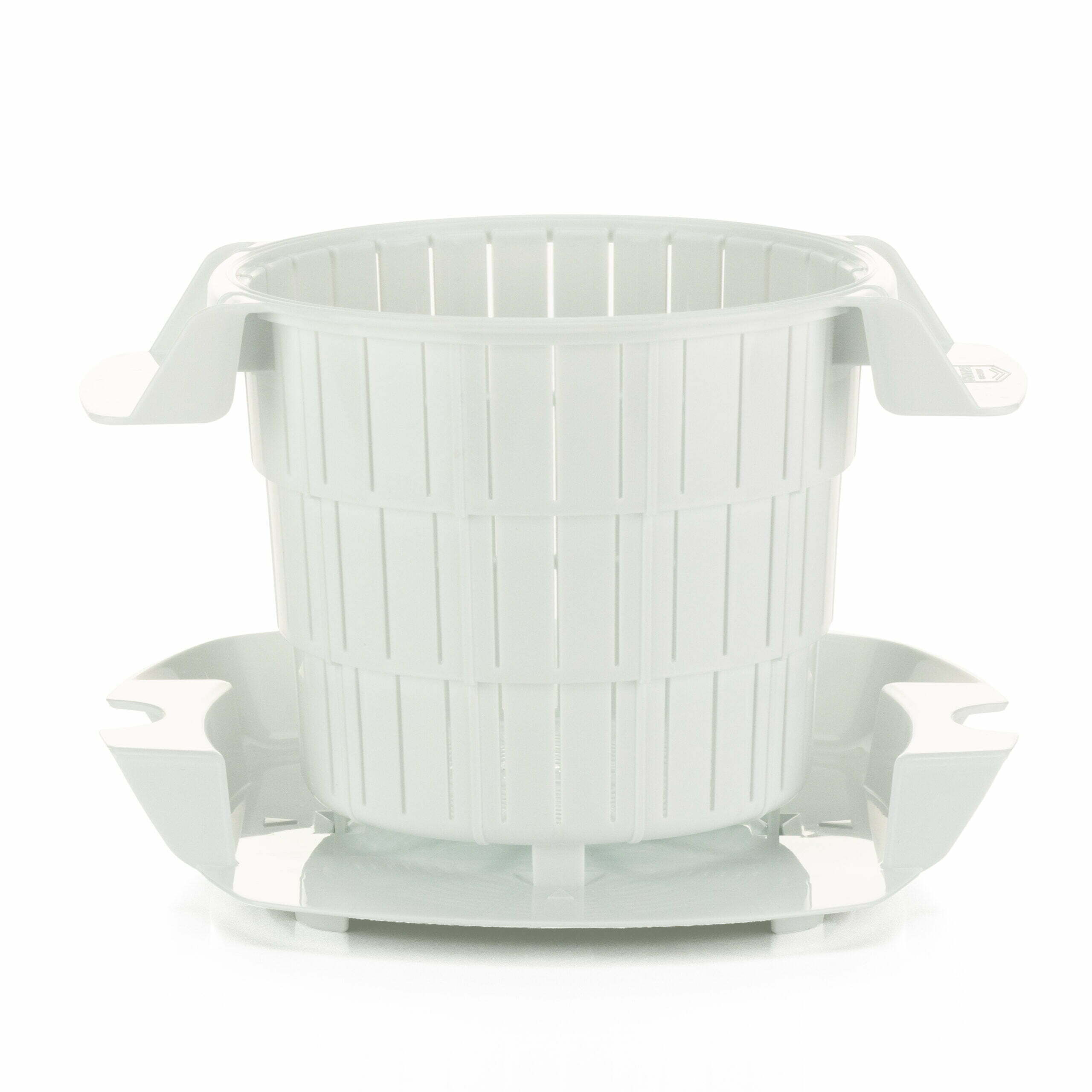 The Borner Cheesemaker consists of a high-quality strainer made of resistant BPA-free plastic. Also included in the scope of delivery is the precisely fitting plate, which serves as a draining aid for liquids. The plate is also used to serve the prepared cheese. Both the cheese strainer and the plate of the Cheesemaker are suitable for cleaning in the dishwasher.
