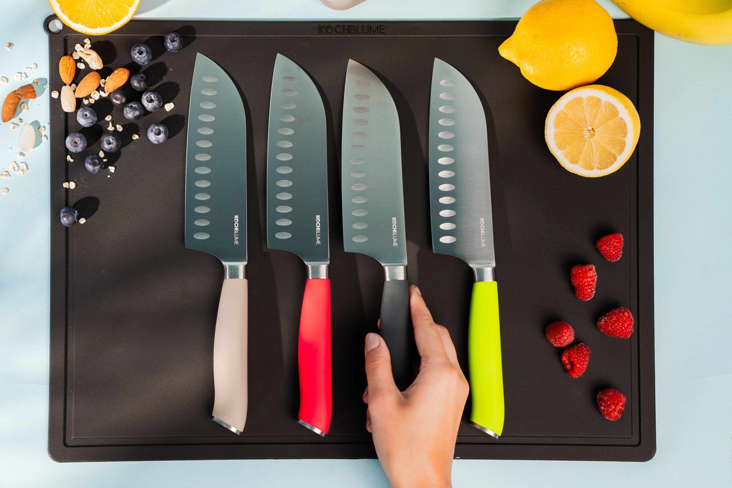 - 1 couteaux universel japonais (lame lisse inox, affûtée à la main, manche silicone)