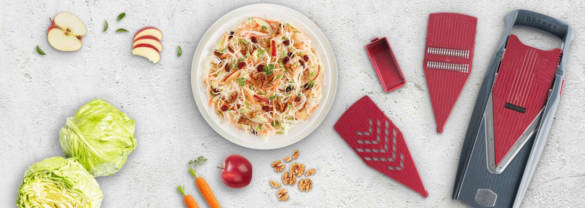 Le slogan de Börner « Change your life! » reflète la volonté de faciliter la vie de nos clients. Nous croyons qu’une alimentation saine devrait être le fondement d’une vie meilleure et nous voulons soutenir cela. Parce que c’est le début d’une nouvelle vie, nos mandolines et râpes sont parfaites pour favoriser une alimentation saine de crudités et autres plats savoureux.